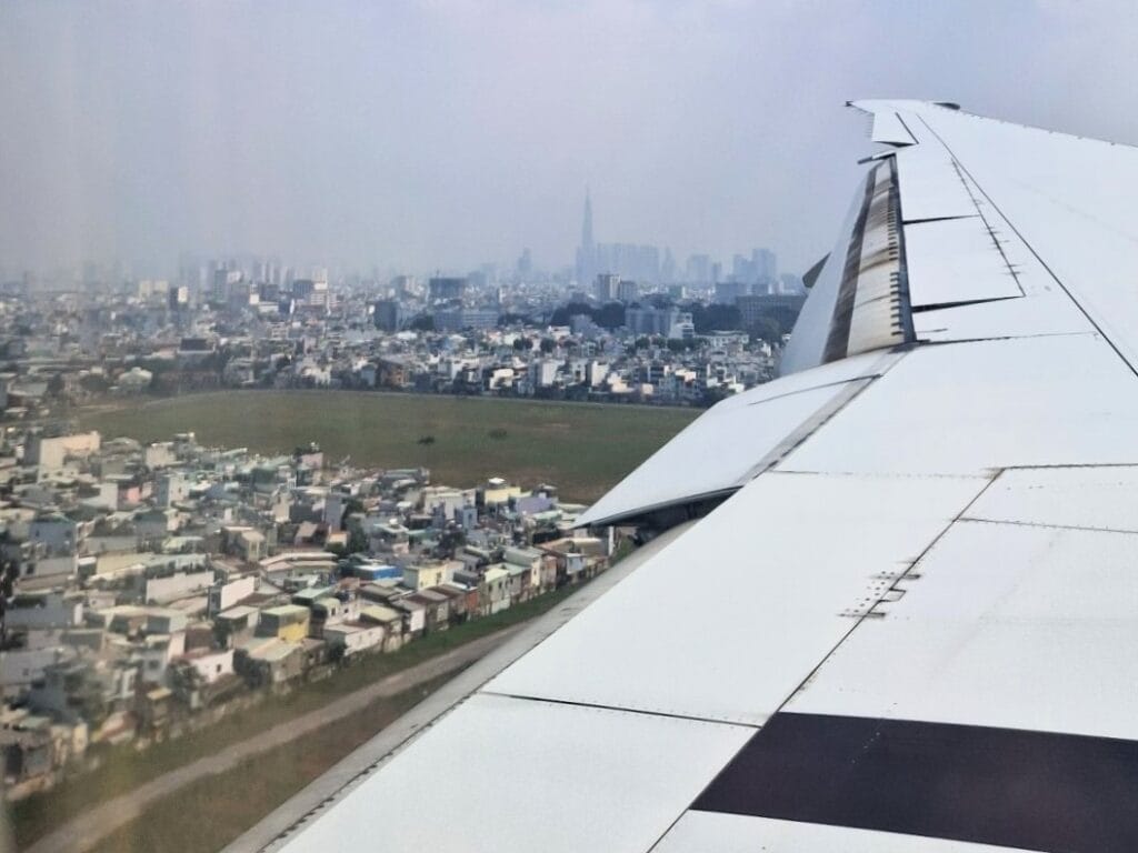 Doha 2.00 yöllä. Sitten hyvin väsyneenä Ho Tshi Minh kentällä odottelemassa välisiivousta ja koneen huoltoa. Ei mitään käsitystä ajan kulusta eikä siitä onko nukkunut vai ei. Missään vaiheessa ei ole tiedotettu, miten tämä huoltovälilasku menee, poistutaanko koneesta vai ei. Sami kysyi stuertilta asiaa ja saatiin kuulla, että jäämme koneeseen.