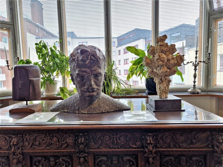 Töölöläisessä kattohuoneistossa voi aistia Juhanin ja Kallen arjen ja juhlan. Siellä järjestettiin ystäville ja tuttaville hulvattomia illanistujaisia, muun muassa kastanjankukkajuhlia aina siihen aikaan kun Hesperianpuiston hevoskastanjat kukkivat. En tiedä oliko pariskunta kiinnostunut kasveista, mutta tällä hetkellä ainakin kodissa on paljon viherkasveja luomassa viihtyisyyttä. Asunnon yhdessä huoneessa, joka on pyhitetty Åke Mattaksen teoksille, roikkuu suuri vihertaideteos, Raimo Saarisen Neosgaia.